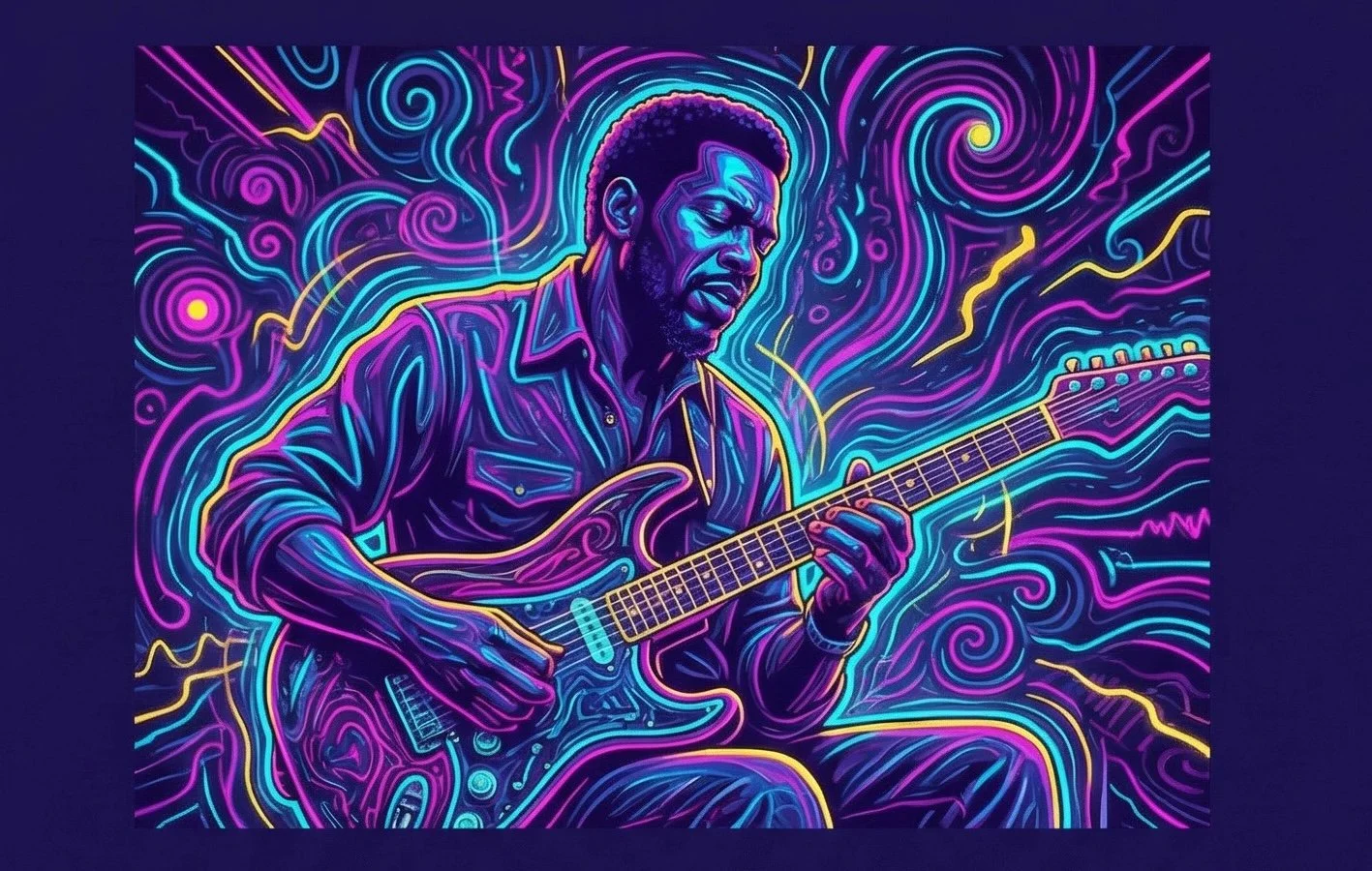 The Blues Man is a remarkable original painting created exclusively for the Bend Blues Festival by artist Erik Hoogan.